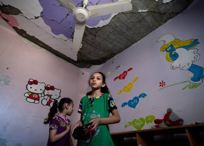 The latest Gaza war is over, but its wreckage still litters the purple bedroom of 9-year-old Shrouq al-Masri and her 4-year-old sister, Razan.