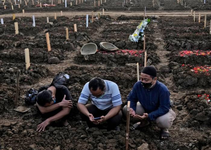 JAKARTA, Indonesia (AP) — Sri Dewi stood in the graveyard with her family, waiting their turn to bury her brother. He suffered a stroke and needed oxygen, but there wasn't any in a hospital overwhelmed with COVID-19 patients.