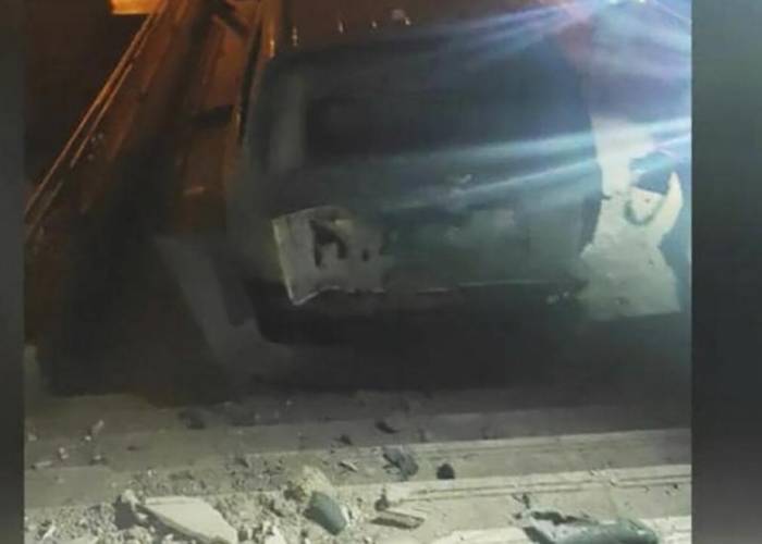 A security video showed the damage to his residence: a van parked outside the residence badly mangled, a shallow crater near the stairs, cracks in the ceiling and walls of a balcony and broken parts of the building’s roof. Two unexploded rockets were filmed at the scene.