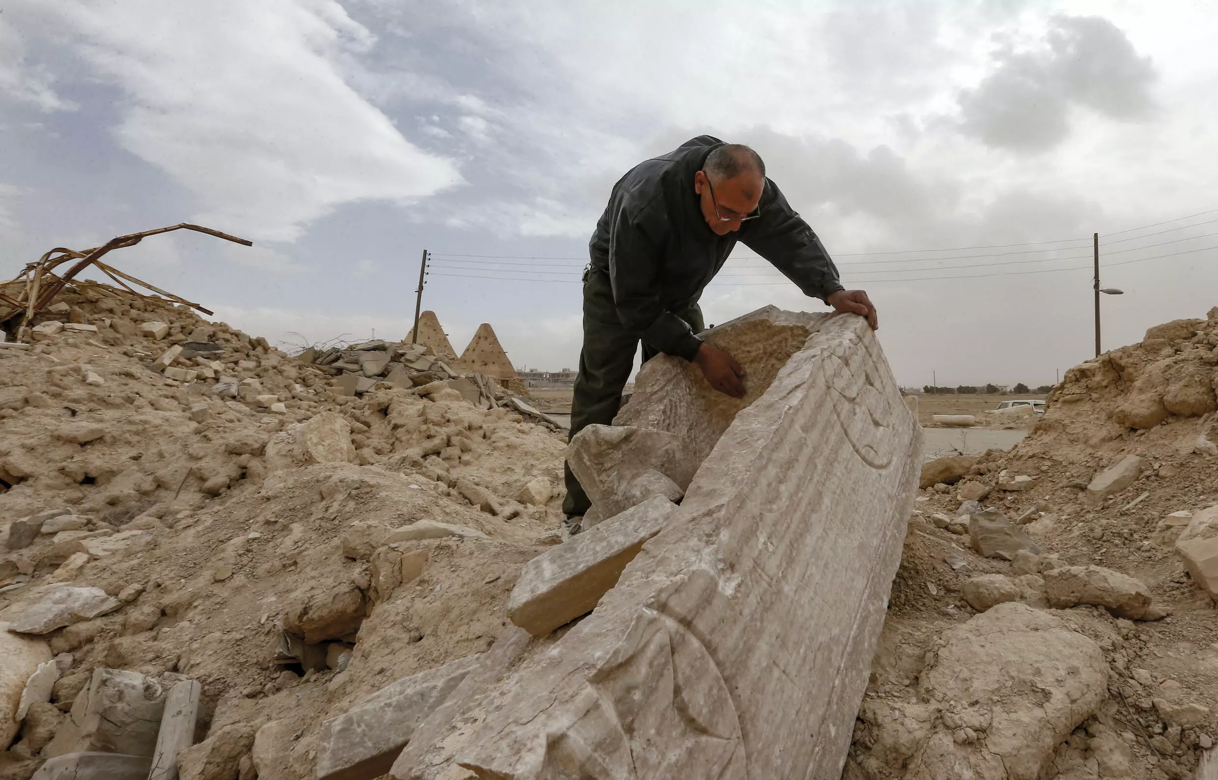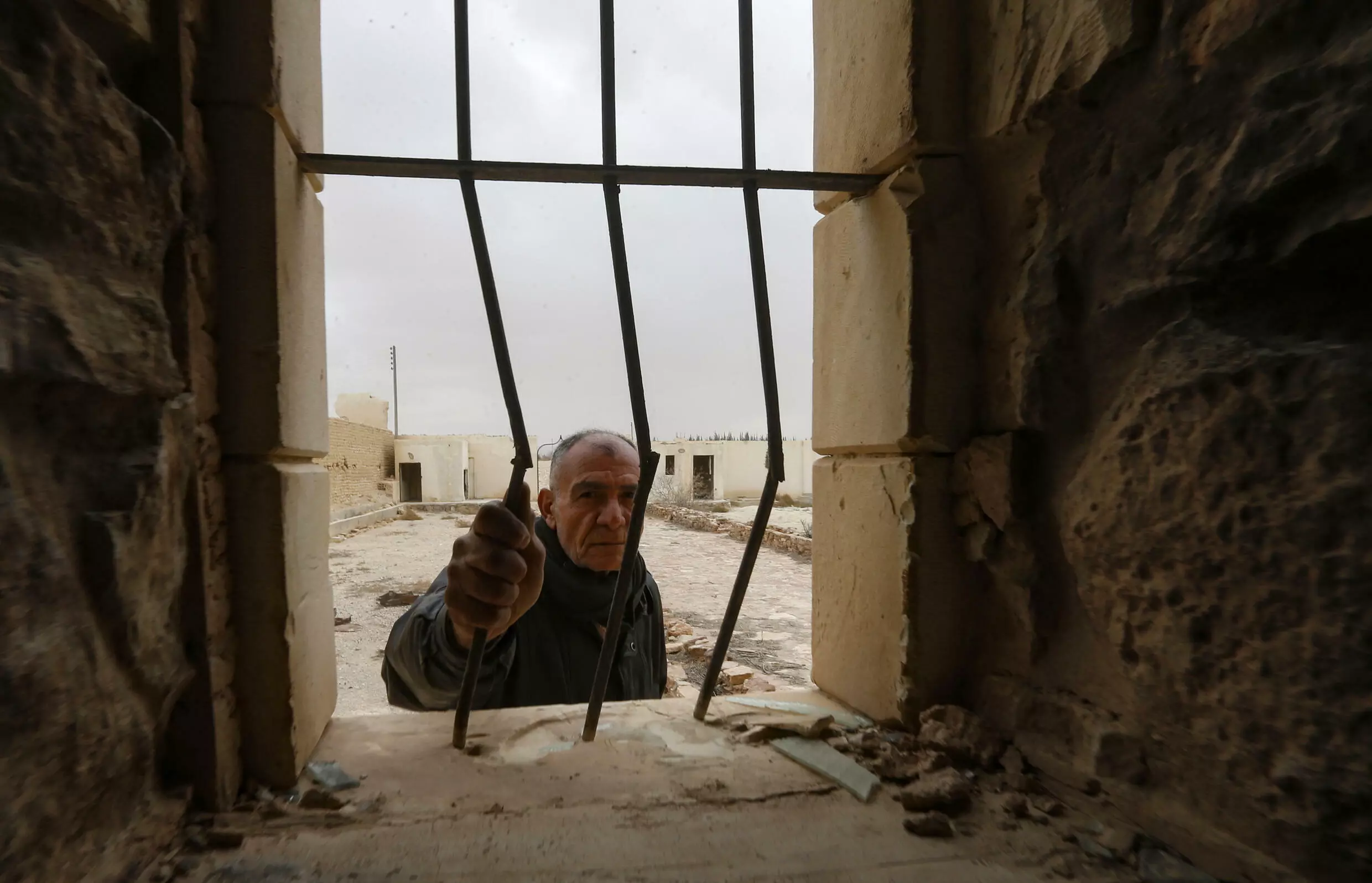 Matanios Dalloul, 62, assesses damage inflicted on the fifth-century Mar Elian monastery by IS jihadists who seized Al-Qaryatain in 2015 LOUAI BESHARA AFP
