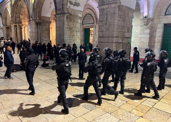 Surrounding the Al-Qibli Prayer Hall, Israeli police went up to the roof of the mosque, smashed some of the windows, and initially intervened with sound bombs against the worshippers inside. Some of the people in the mosque tried to resist the police by throwing fireworks.