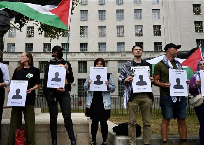 Hundreds of people gathered in London on Wednesday to commemorate Palestinian journalists killed in Israeli attacks in Gaza, in an event held outside the UK Prime Minister’s Office at Downing Street.