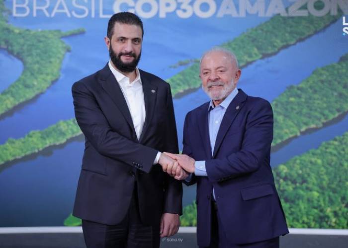 President Ahmad al-Sharaa arrived at the venue of the COP30 Climate Summit in Belém, Brazil, where he was received by Brazilian President Luiz Inácio Lula da Silva. President al-Sharaa is participating in the two-day World Leaders Climate Action Summit.