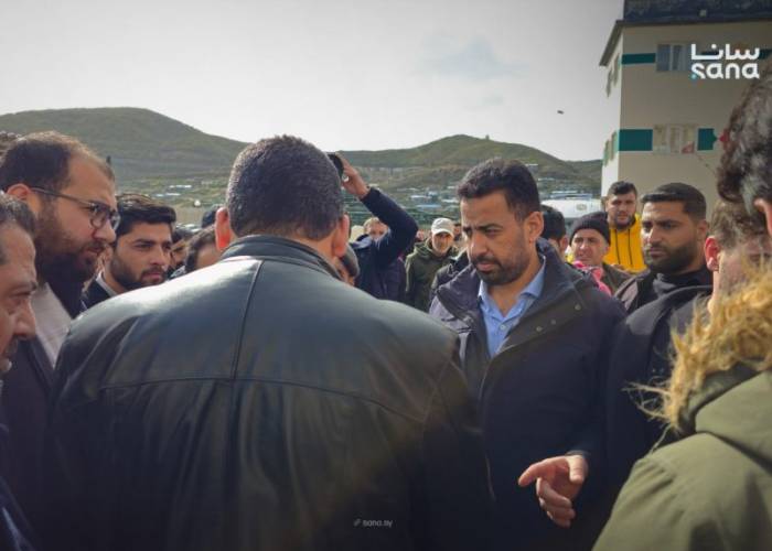 Syria’s Minister of Health Musab al‑Ali and Minister of Emergency and Disaster Management Raed al‑Saleh visited the “Rahma” center in Kherbet al-Jawz, rural Idlib, on Sunday to assess the situation of displaced families affected by recent floods and to review ongoing emergency response measures. The visit was joined by Idlib Governor Mohammad Othman, Lattakia Governor Mohammad Abdulrahman, and the Deputy Governor of Aleppo for emergency affairs.