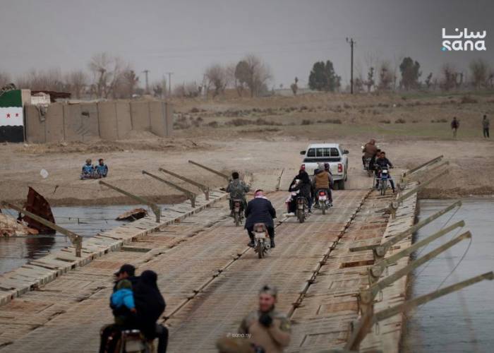 The Ministry of Defense inaugurated a temporary bridge connecting the villages of Marat and Al-Mura'iyah on the Euphrates River in Deir ez-Zor, in the presence of Deir ez-Zor Governor Ghassan Al-Sayed Ahmed, 66th Division Commander Brigadier General Ahmed Mohammed Al-Jassem, and a number of government officials and commanding officers.