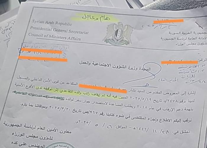 Testimonies and investigations by Zaman al-Wasl reveal the continued suffering of thousands of retirees whose pensions and insurance benefits were cut off by the security apparatus of the former regime under the pretext of "supporting terrorism" or their children's affiliation with the revolution.