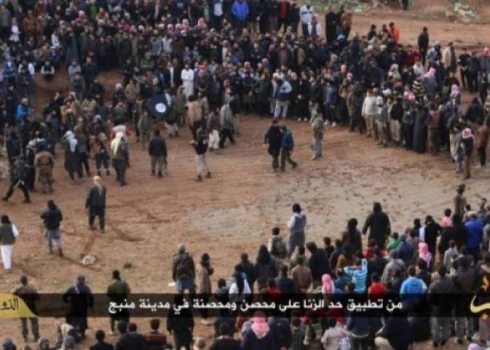 (Zaman Al Wasl)- The Islamic State has carried out the punishment of Al-Rajem “Stoning to death” on charge of “adultery” against married man and woman on the outskirts of Manbej city in the Northern Eastern countryside of Aleppo after Friday prayer, where some militants and people carried out the punishment, according to Quran’s verse: “Many believers should witness their pain” .