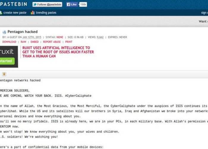 The self-declared Cybercaliphate "is already here, we are in your PCs, in each military base," the hackers wrote on the seized Twitter feed for Centcom, which oversees the US-led air war against the group in Iraq and Syria.