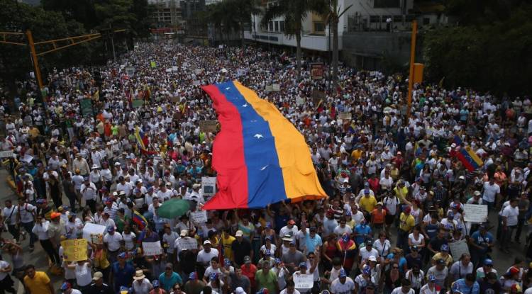 Protesters flowed into the streets of Caracas Saturday, with flags and placards, many to support opposition leader Juan Guaido's calls for democratic elections and others to back embattled President Nicolas Maduro. Carrying Venezuelan flags and blowing horns and whistles, Guaido's...