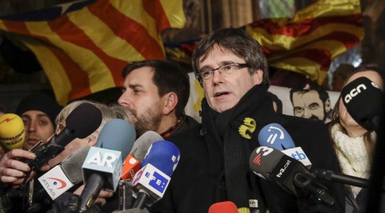 Finnish police said Saturday they were seeking to arrest Catalonia's former president Carles Puigdemont under a European arrest warrant issued by Spain, but did not know his whereabouts. Puigdemont, who lives in self-imposed exile in Belgium, has been visiting Finland since Thursday for...