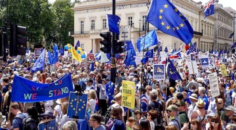 Hundreds of thousands of people opposed to Britain’s withdrawal from the European Union marched through central London on Saturday to demand a new referendum as the deepening Brexit crisis risked sinking Prime Minister Theresa May’s premiership. Marchers set off in central London with...