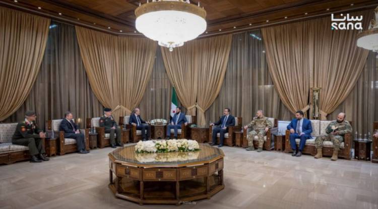 President Ahmad al-Sharaa and Minister of Foreign Affairs and Expatriates Asaad Hassan al-Shaibani met with Deputy Prime Minister and Minister of Foreign Affairs and Expatriates Ayman Safadi, Chairman of the Joint Chiefs of Staff Major General Yousef Huneiti, and Director of General...