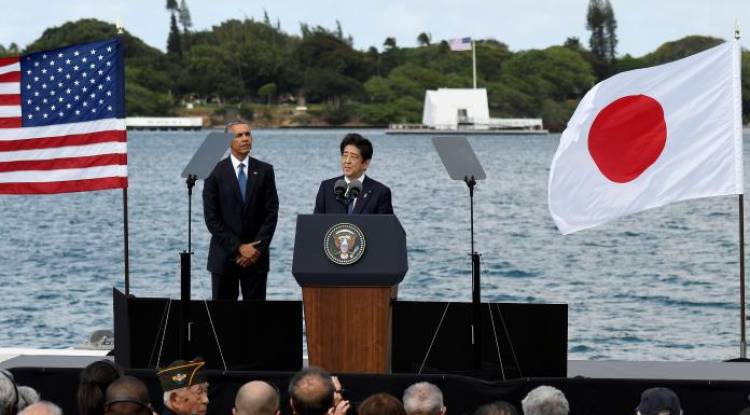 Japanese Prime Minister Shinzo Abe made a symbolic visit to Pearl Harbor with President Barack Obama on Tuesday, commemorating the victims of Japan's World War Two attack and promising that his country would never wage war again. The visit, just weeks before Republican President-elect Donald...
