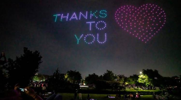 Hundreds of drones lit up the night sky in Seoul for a spectacular showcase of motivational and awareness messages as the world battles the coronavirus pandemic. Three hundred unmanned aerial vehicles were programmed to form images above the Han river -- which runs through the South Korean...