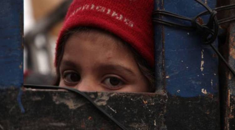 Syrian teacher Ahmad al Hilal listens to his young pupils sitting on a mat reciting the Arabic alphabet in a makeshift school in a tent on the outskirts of a sprawling refugee camp city along the Turkish border. Many ran for their lives with their mothers under heavy aerial bombing by...
