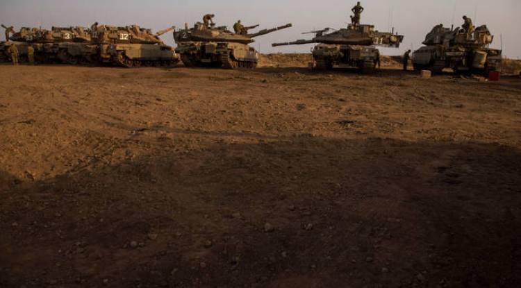 Israeli tanks pounded Hamas targets in the Gaza Strip early Monday in what has become a daily response to Palestinian rockets and airborne firebombs launched into southern Israel and to clashes on the border. "Tanks targeted a number of military observation posts belonging to the Hamas...