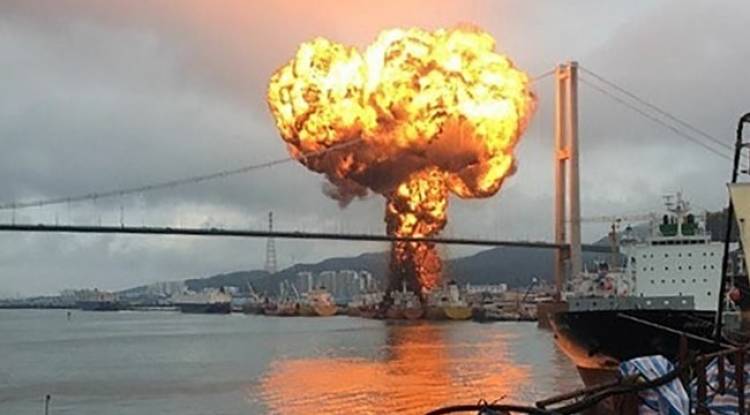 A huge blast on an oil tanker in a South Korean port Saturday sparked a raging fire that spread to a nearby vessel, leaving 18 people injured, authorities said. A ball of fire shot up high above the ship and thick black smoke billowed into the air, dramatic images showed. Firefighters...